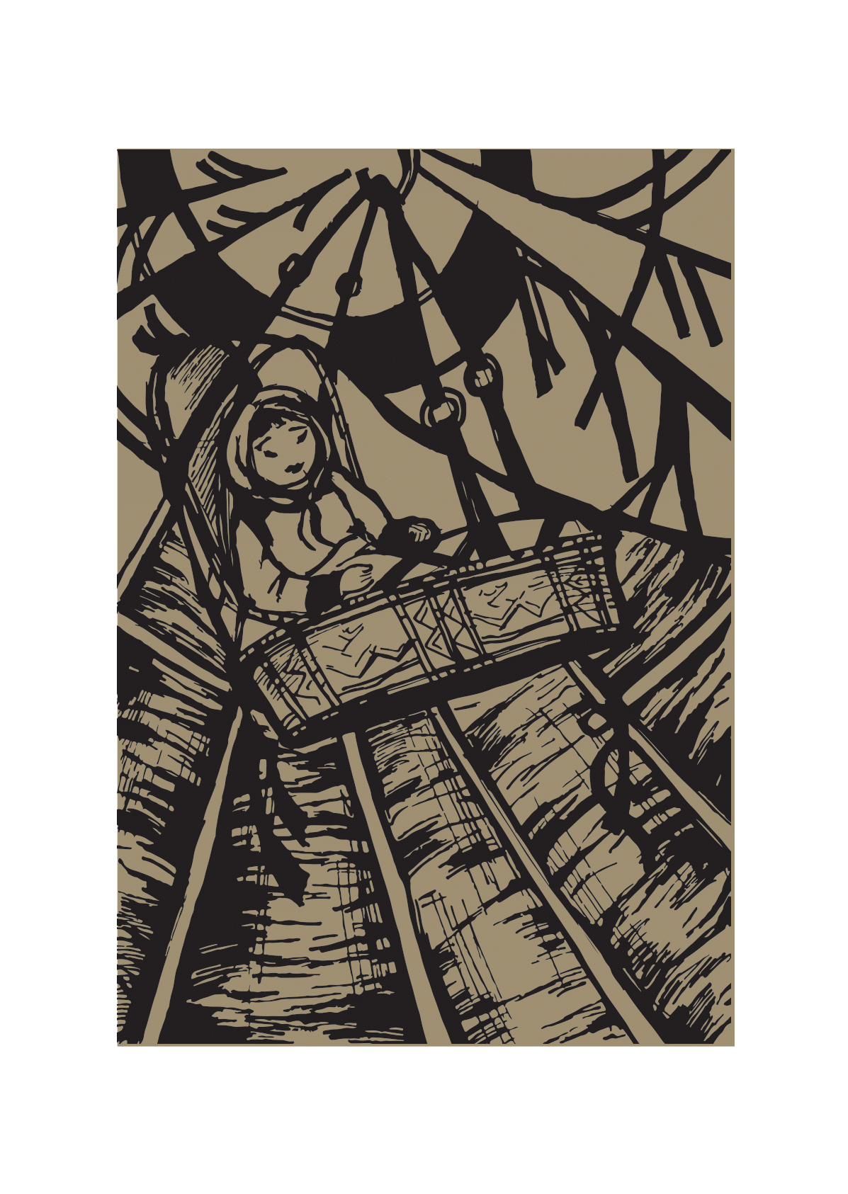 Гайша Ульбаева — художница и преподаватель в художественной школе, черпающая вдохновение в культуре и искусстве коренных народов Севера. Её работы раскрывают образы традиционной жизни через тонкие и выразительные иллюстрации. В этом теневом театре оживают её работы, превращая свет и тень в живой рассказ о традициях и быте северных народов